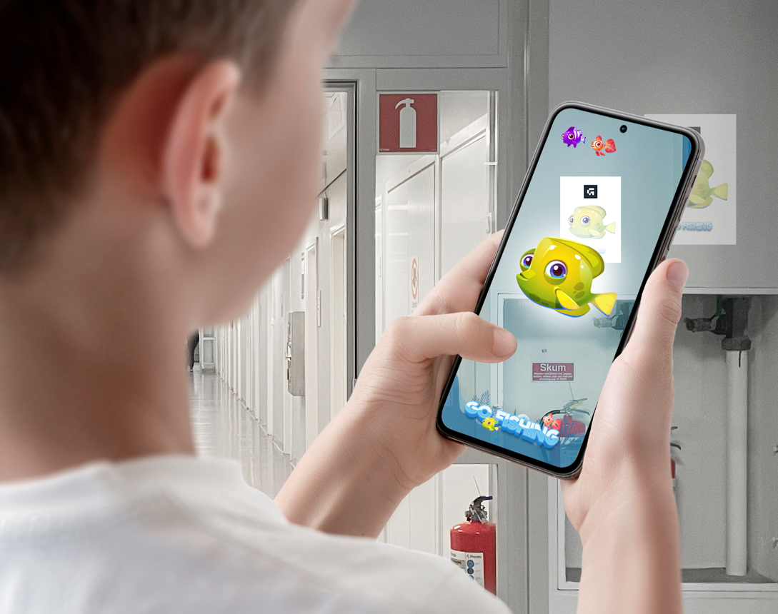 This project has explored the possibilities of using Augmented Reality (AR) to guide patients from the Pediatric Emergency Department to the radiology department at Södersjukhuset. The purpose of the project was to develop a solution that assists children and their relatives in navigating to and from radiology while adding an entertaining dimension to reduce stress for both children and their caregivers. A simplified prototype based on the concept of Go Fishing, where the user collects fish on the way to radiology, was developed to evaluate how well the concept worked in practice and to verify user satisfaction.